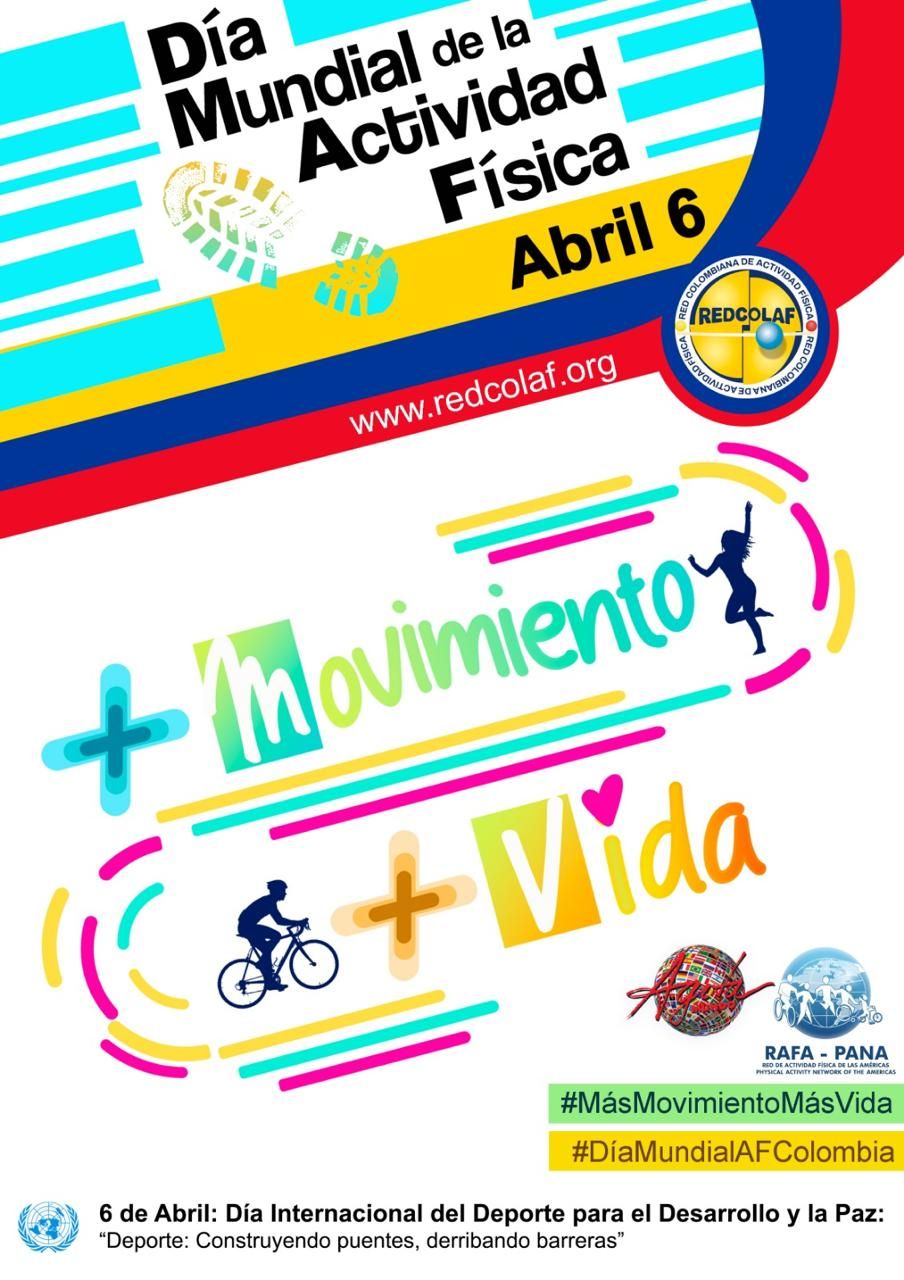 Por favor, suba sus fotos o videos a sus redes y las etiqueta con los hashtags #MásMovimientoMásVida y #DiaMundialAFColombia Recuerde: “MÁS MOVIMIENTO, MÁS VIDA¨